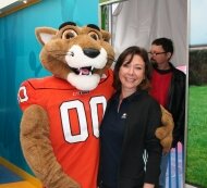 Mary Polak, Minister of Healthy Living and Sport, hangs out with Leo at an ActNow BC event at the August 22 BC Lions game. more